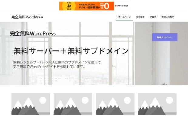 ↓こちら、完全無料でWordPressをインストールしたデモサイトです。